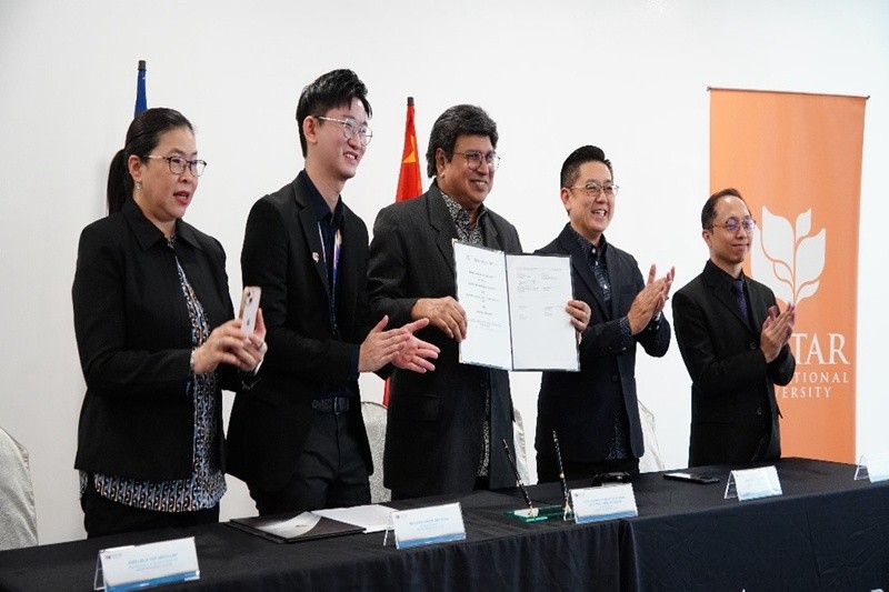 嘉興南洋職業(yè)技術(shù)學(xué)院黨委書記、校長(zhǎng)王雪亙,馬來(lái)西亞優(yōu)理國(guó)際大學(xué)校長(zhǎng)名譽(yù)教授丹斯里拿督斯里薩侯哈密阿布巴卡博士,公司副總經(jīng)理魯富貴等領(lǐng)導(dǎo)參加簽約儀式。